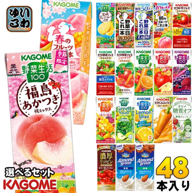 カゴメ 野菜ジュース 野菜生活 他 195ml 200ml 紙パック 選べる 48本 (24本×2 まとめ買い) 季節限定 よりどり 福島あかつき桃 春のフルーツ 宮崎 月夜実グレープフルーツ アーモンドブリーズ 機能性表示食品