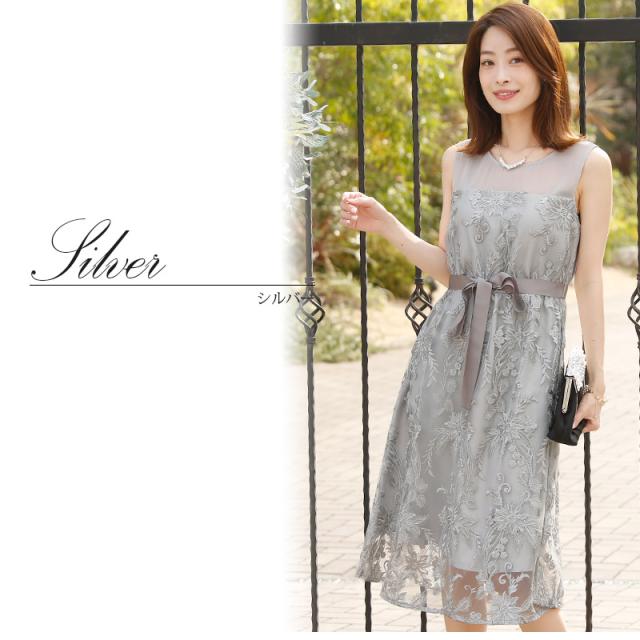 シルバーは落ち着いた上品な雰囲気に。ウエストリボンが可愛いアクセント。