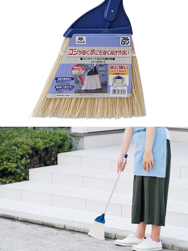 使いやすい屋外用のホウキポリプロピレン製の毛なので水に強く、濡れたゴミや落ち葉の掃除にも対応します。