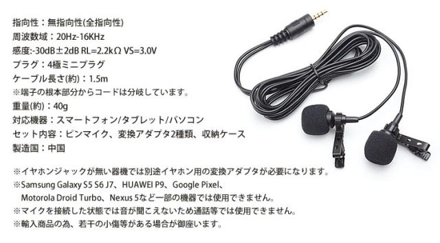 ピンマイク 3.5mm コンデンサー マイク 無指向性 全指向性 変換アダプタ 収納袋 ミニマイク クリップ スマートフォン パソコン PR-DU515A【メール便 送料無料】