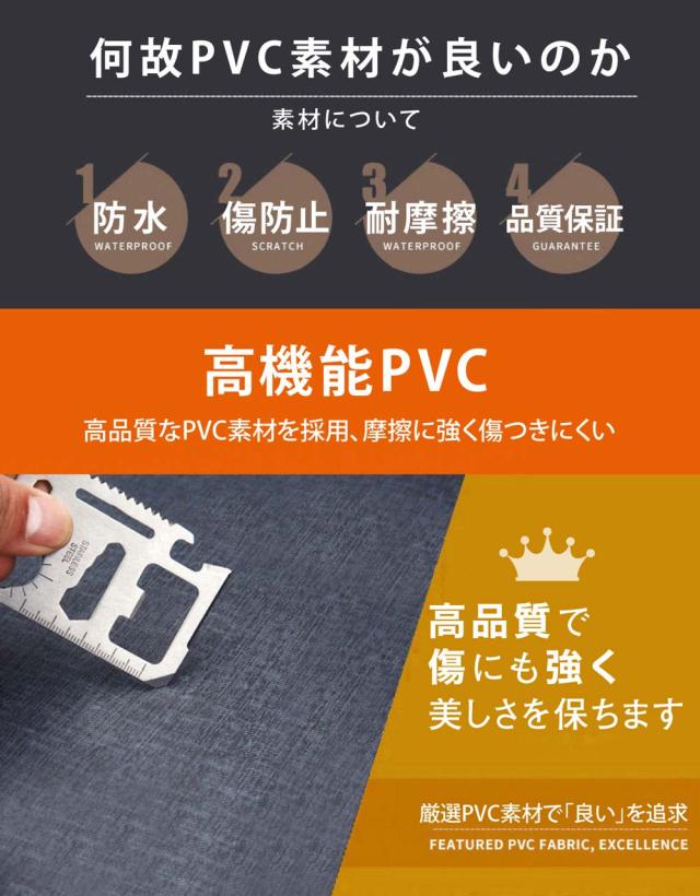 防水・軽量・傷に強い高品質PVC素材を使用。