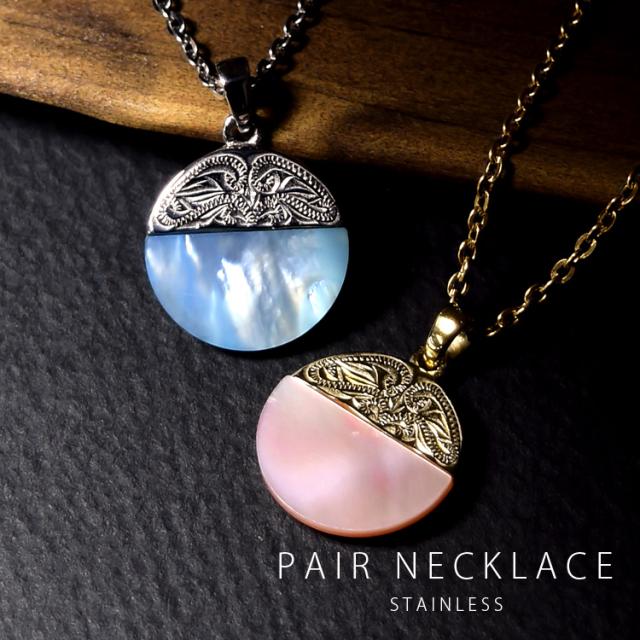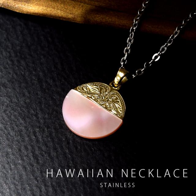 ハワイアンジュエリー ネックレス メンズ レディース ステンレス つけっぱなし リバーシブル サージカルステンレス ネックレス シェル サークル スクロール あずきチェーン付き スティールシルバーカラー 金属アレルギー対応 gpss1170st