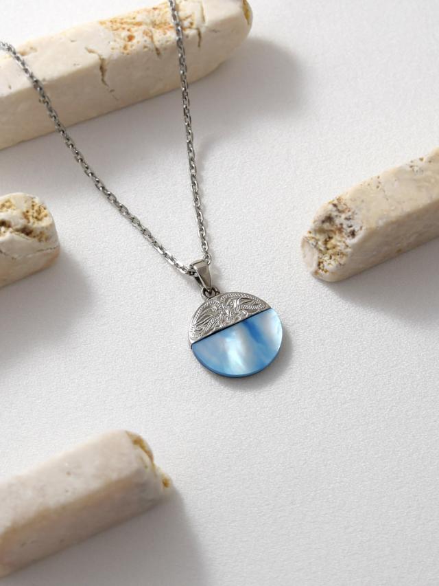 ハワイアンジュエリー ネックレス メンズ レディース ステンレス つけっぱなし リバーシブル サージカルステンレス ネックレス シェル サークル スクロール あずきチェーン付き スティールシルバーカラー 金属アレルギー対応(gpss1170st)