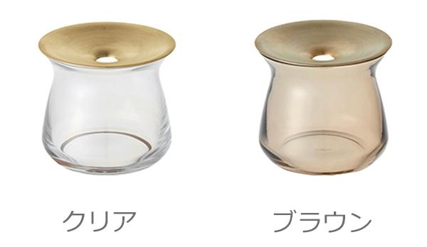 | 上質な佇まいのガラスと、マットな質感の真鍮 ガラスと真鍮、異なる2素材の組み合わせから成る花器です。真鍮のプレートは鈍い光を放つだけでなく、経年変化も愉しめます。 |