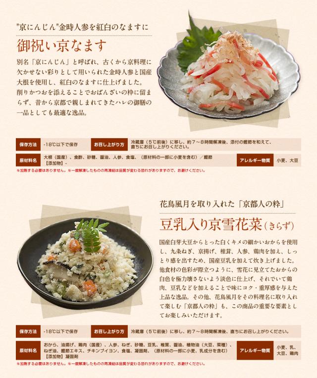 京ブランド認定のおばんざい詰合せです。京野菜の「九条ねぎ」や「湯葉」など、主原料国産で味付けはコクのある薄味仕立てです。おばんざいの数々をお重やお皿に盛込み、おせち気分を味わってみてはいかがでしょうか。