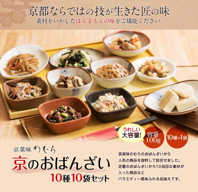 京菜味のむらのおばんざいから人気の商品を抜粋して詰合せました。定番のおばんざいから10品目の食材が入った商品などバラエティー感あふれる品揃えです。