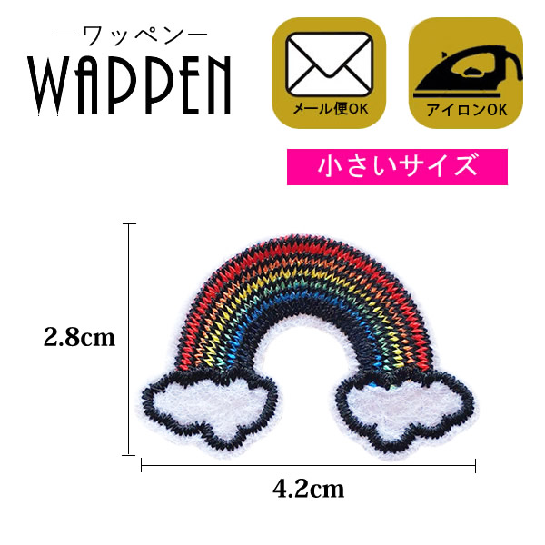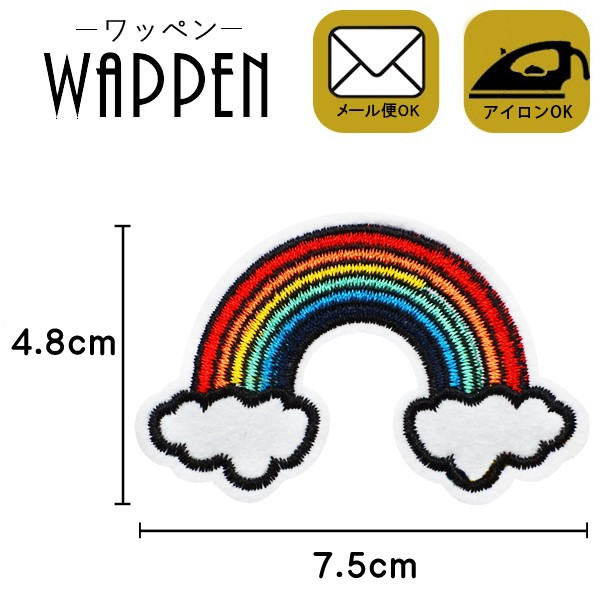 虹 ワッペン 刺繍 アイロン接着 縦5.3cm×横7.8cm レインボー アイロンワッペン 手芸 入園 入学 アップリケ デコ母の日 プレゼント ギフト