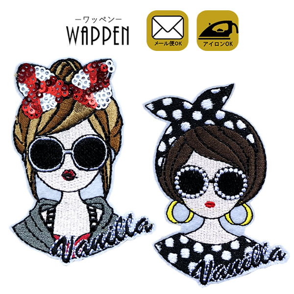 ワッペン 刺繍 アイロン接着 サングラス 女の子 ガール アイロンワッペン 手芸 アップリケ デコ カスタム かわいい母の日 プレゼント ギフト