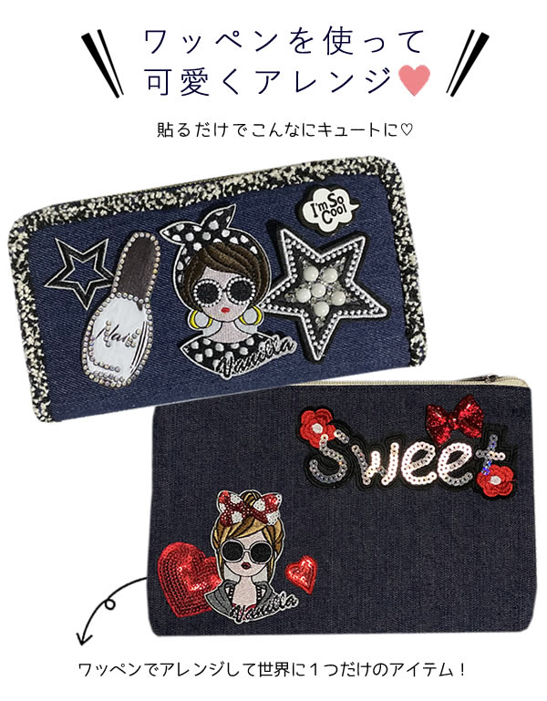 ワッペンをバッグやポーチなどに貼り付けて、自分だけのオリジナルデザインを作り出すことができます!