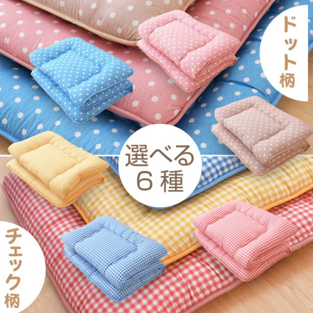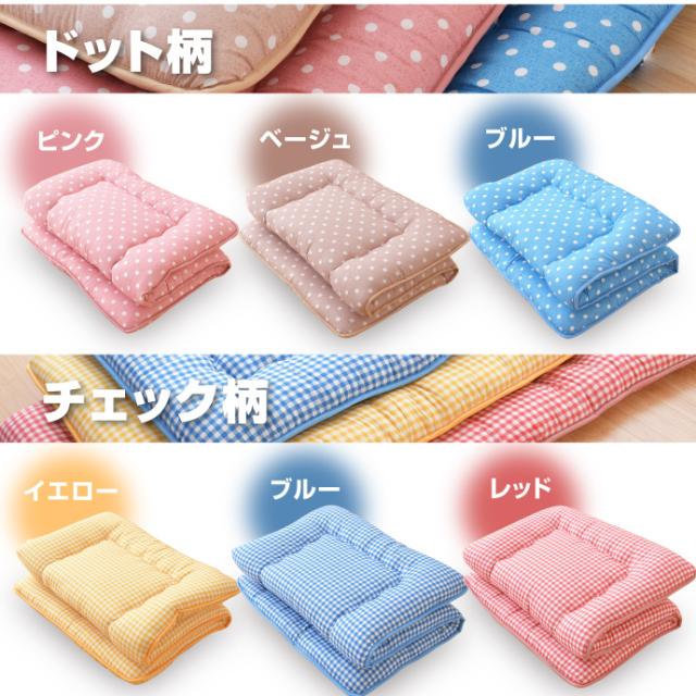 日本製 色柄 敷布団 ジュニア 約85×185cm 抗菌防臭加工 固くわた入り 三層構造 選べる6種