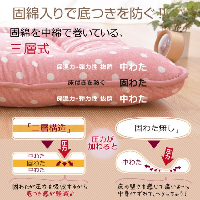 固綿を中わたで巻いている三層式で、固綿が圧力を吸収するので、『底つき感が軽減』されます。