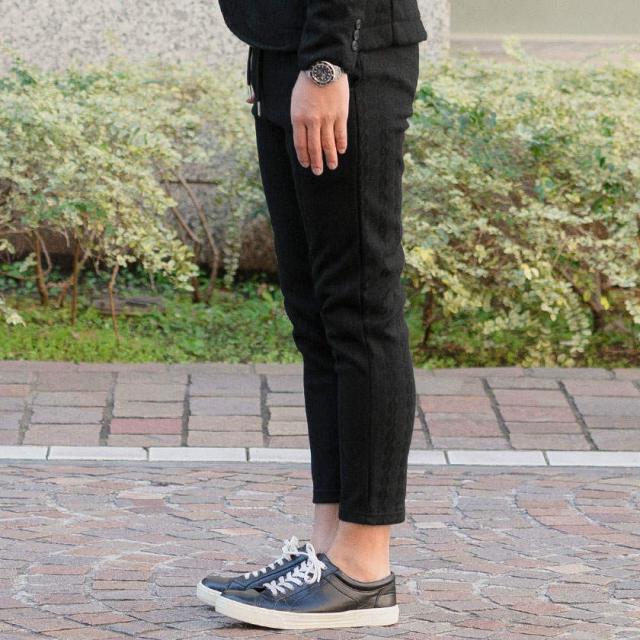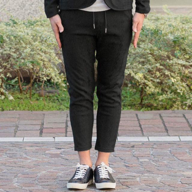 上品な素材感にウエストゴムと紐仕様でカジュアル感をプラスし、動き易く穿き心地も抜群です。