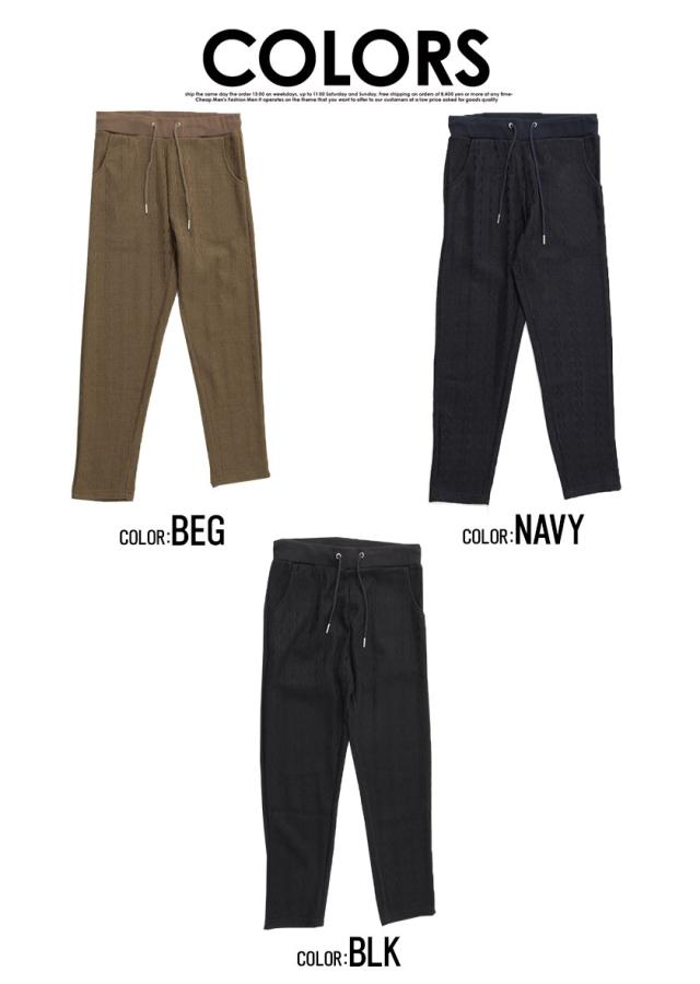 ニットパンツ メンズ CavariA キャバリア ケーブルニットパンツ 即日発送 ボトムス イージーパンツ アンクルパンツ 9分丈 くるぶし丈 ウール混 ウエストゴム 細身 タイト セットアップ可能 ブラック ベージュ ネイビー 黒 M L XL 春 冬 [CAST20-04]