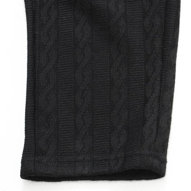 ケーブル模様の立体感が特徴のニット素材に裏側は肌触りよい滑りの良い素材で裏地要らずの一枚仕立て。
