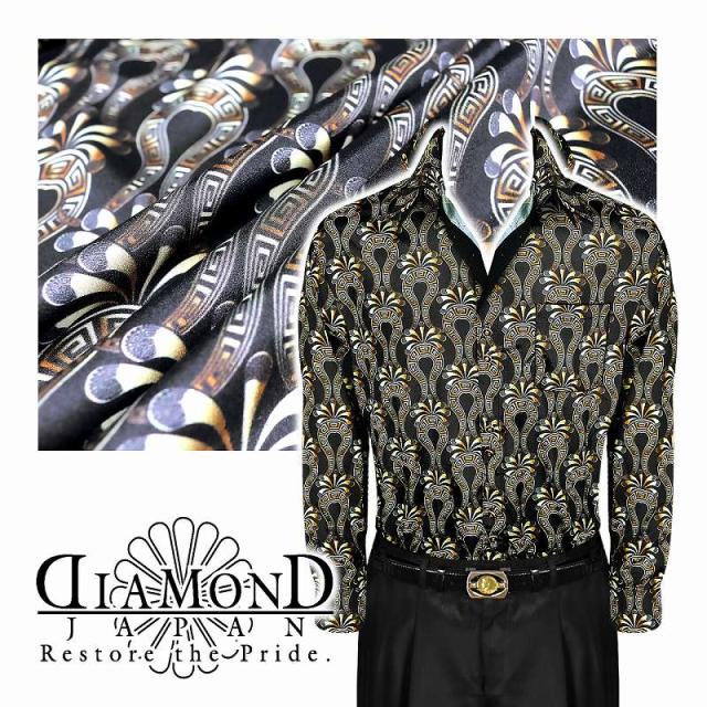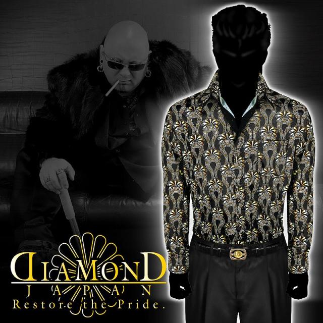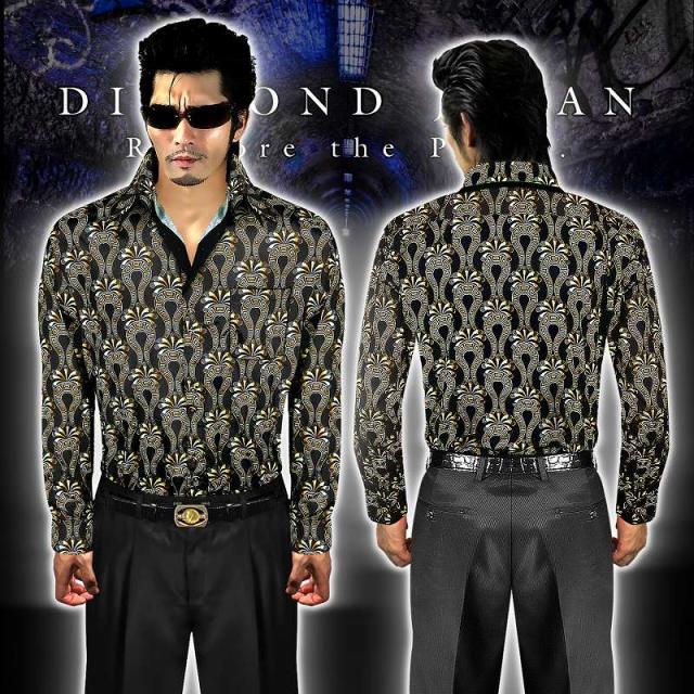 ドレスシャツ メンズ ヤクザ オラオラ系 ファッション 服 Yシャツ 柄シャツ 成人式 結婚式 二次会 パーティー 紳士 派手 ヤンキー オラオラ 悪羅悪羅 DJ-161 ベルクロ柄 バロック柄 黒×黄 二重襟 悪党の店 バースジャパン BIRTHJAPAN