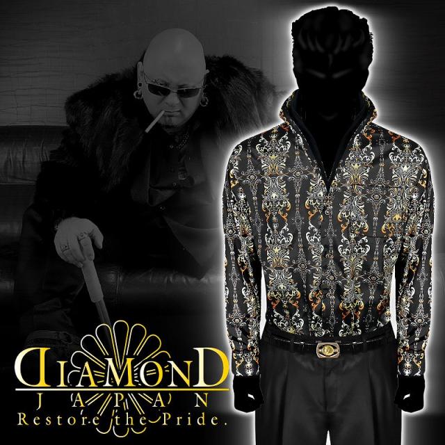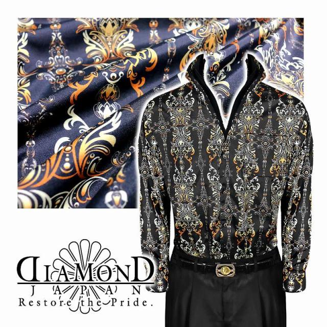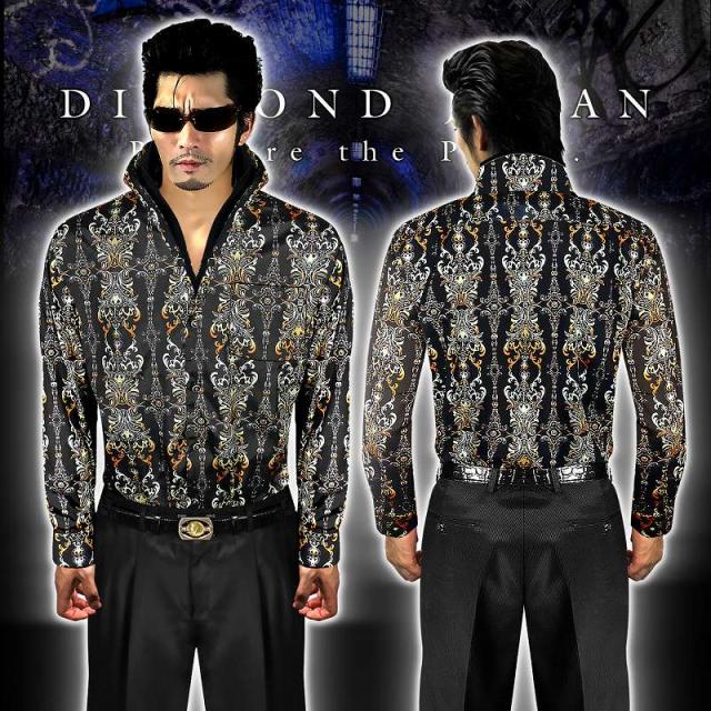 ドレスシャツ メンズ ヤクザ オラオラ系 ファッション 服 Yシャツ 柄シャツ 成人式 結婚式 二次会 パーティー 紳士 派手 ヤンキー オラオラ 悪羅悪羅 DJ-160 ダマスクストライプ柄 バロック柄 黒×黄 スタンド襟 立て襟 悪党の店 バースジャパン BIRTHJAPAN