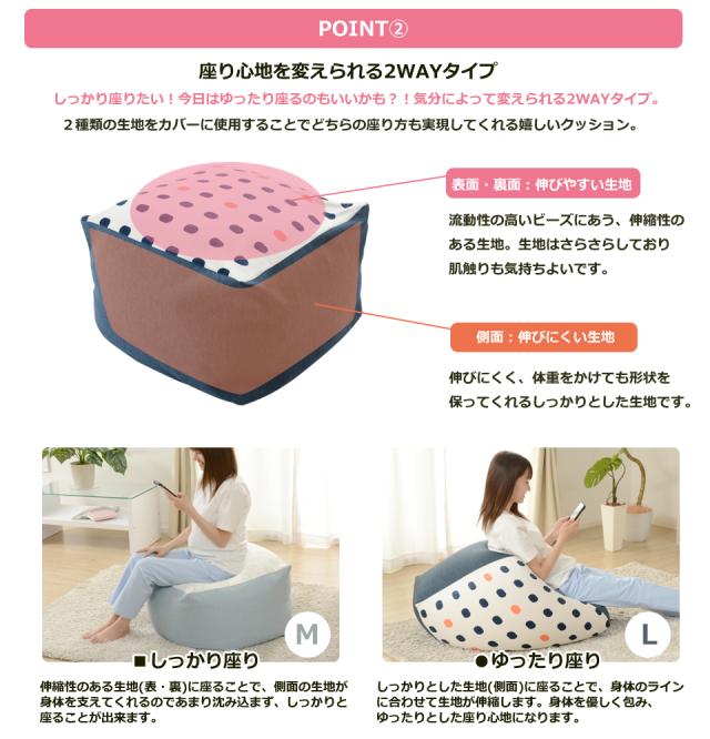 ※へたってしまった場合、補充ビーズ用クッションを入れることで使用感を回復させることができます。