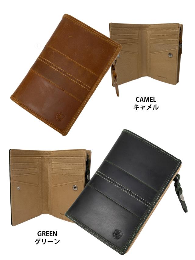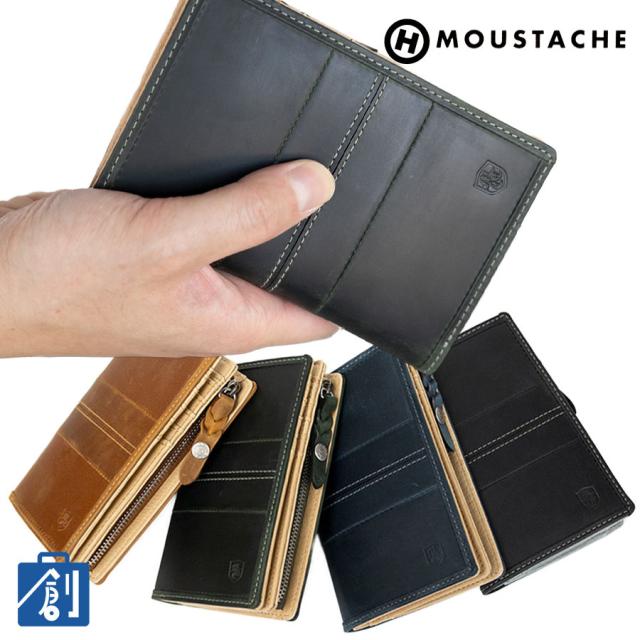 財布 メンズ 二つ折り 二つ折り財布 本革 革 レザー ブランド おしゃれ 小銭入れ ファスナー カード グリーン 黒 緑 通販 二つ折りファスナー 男性 縦 大容量 MOUSTACHE ムスタッシュ 深札入れ 折りたたみ財布 本皮 送料無料 DBR-5409