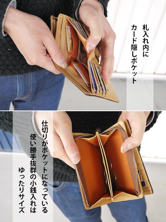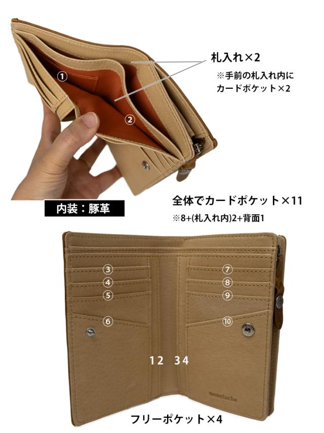 moustacheのお財布の中でこの深札入れはダントツ人気。 小銭入れがL字ファスナーで大きく開き抜群の使い勝手です。