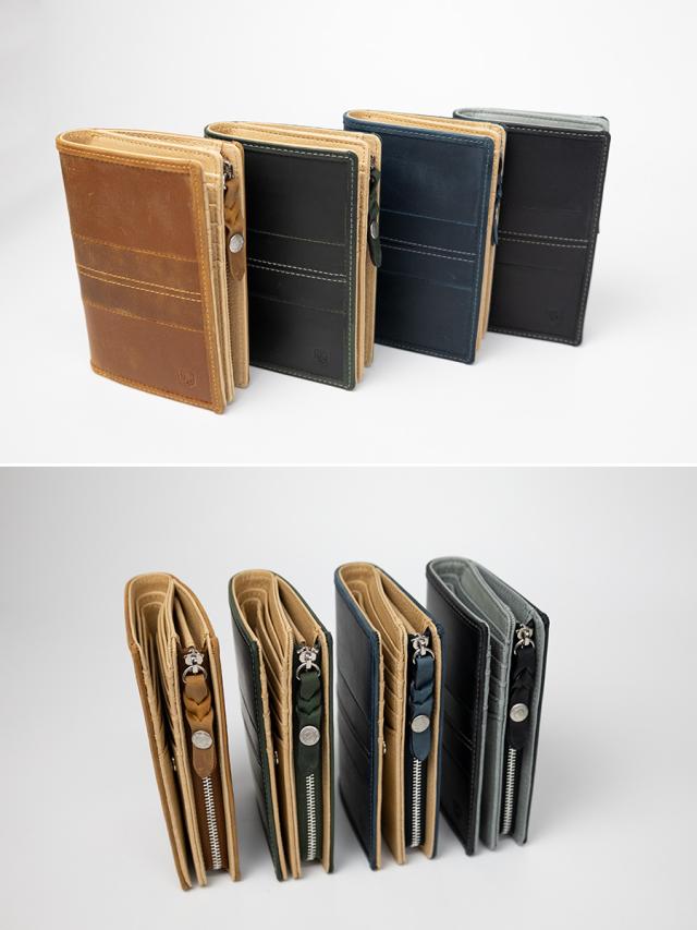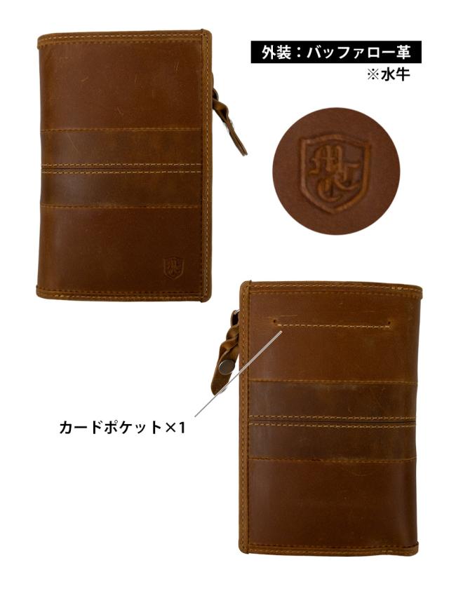バッファロー(水牛)レザーにアンティーク加工を施したワイルドな表情のお財布シリーズのミドルウォレットです。
