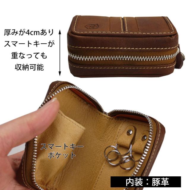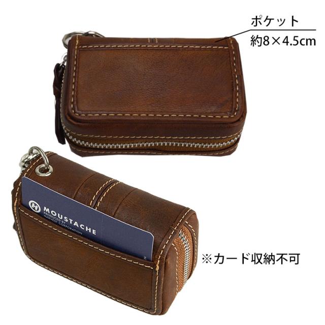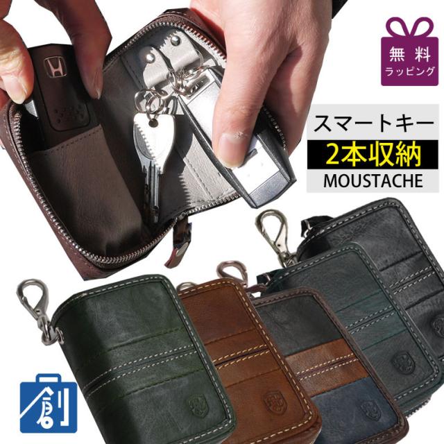 スマートキーケース メンズ トヨタ スズキ ホンダ 革 本革 レザー 日産 2個収納 キーケース スマートキー 収納 ファスナー キーリング 家 マンション 車 鍵 カラビナ 2連フック MOUSTACHE ムスタッシュ おしゃれ おすすめ 箱入り DBR-5424 プレゼント