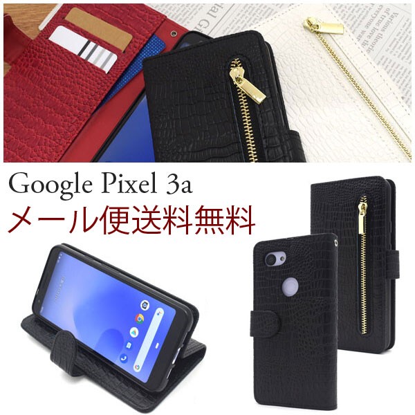 Google Pixel 3a用クロコダイルレザーデザイン手帳型ケース