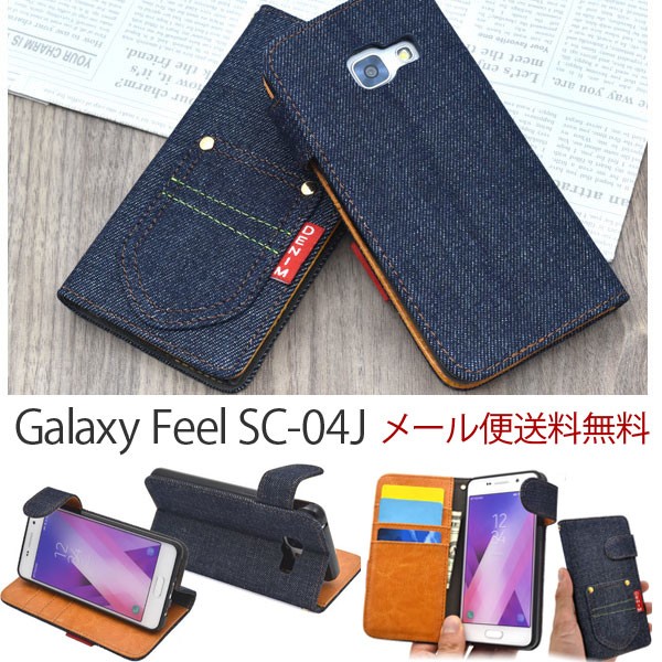 Galaxy Feel SC-04J ケース カバ ー 手帳 デニム おしゃれ スタンド カード収納 ドコモ サムスン