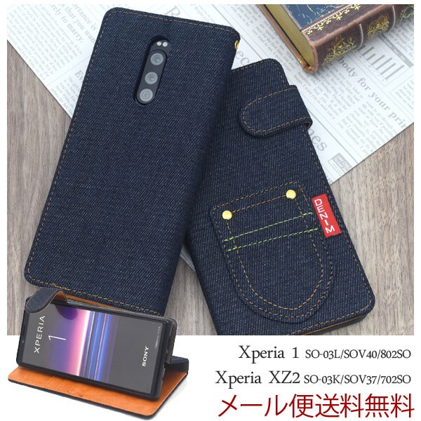 スマホケース Xperia 1 SO-03L/SOV40/802SO 手帳型 デニムデザイン スタンドケース エクスペリア XZ2 Xperia SO-03K SOV37 702SO 手帳