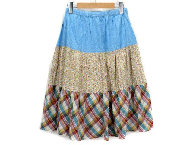【中古】ビームスハート BEAMS HEART スカート フレア 切替 花柄 チェック コットン マルチカラー レディース