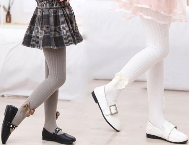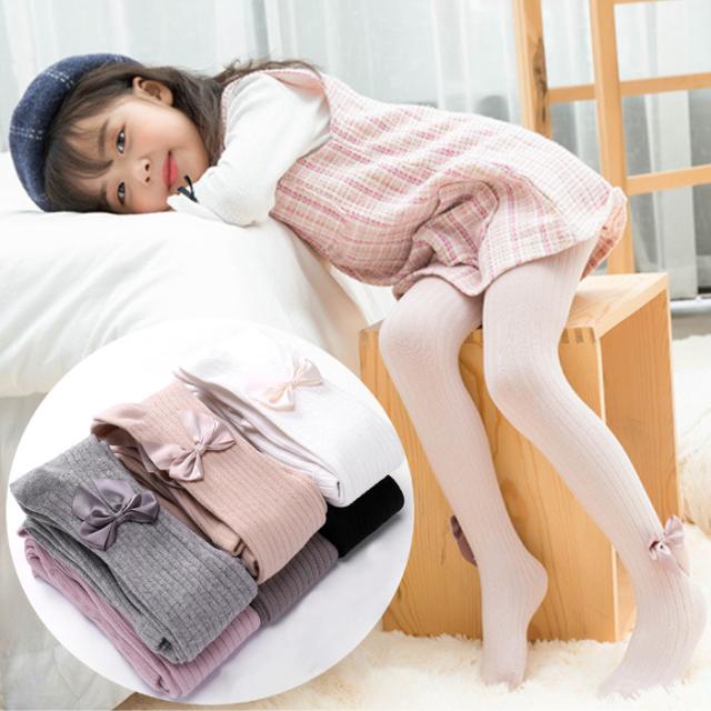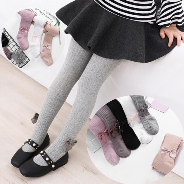子供タイツ 女の子 キッズ ソックス ・・リボン付きリブタイツ カラー かわいい 防寒対策