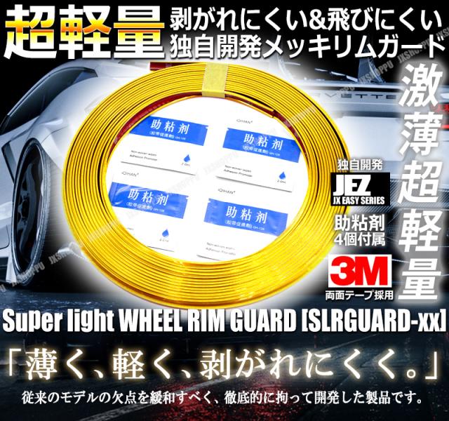 [独自開発] 剥がれにくい 超軽量 ホイールリムガード 8m [ゴールド] メッキ ガリ傷 予防 傷隠し 激薄 3M製両面テープ 助粘剤4個 送料無料 エクステリア 軽自動車 普通車 角 エッジ スリーエム 両面テープ SET セット 高級感 かわいい おしゃれ ホイール リム プロテクター 傷