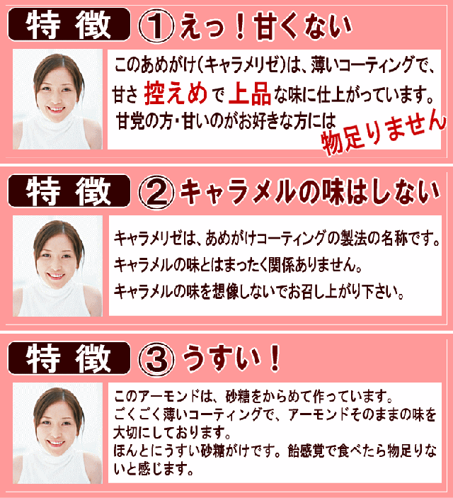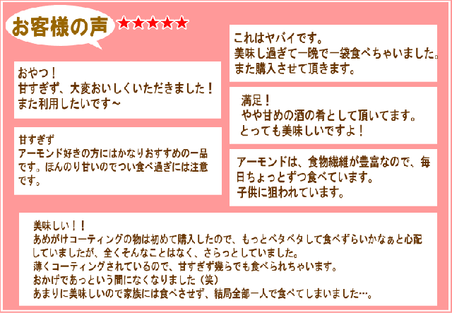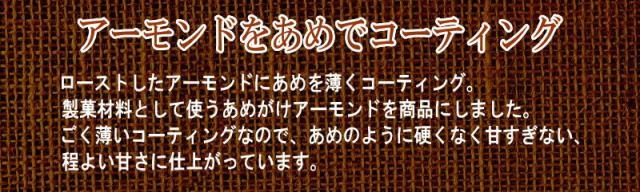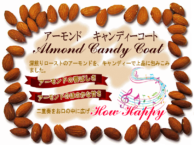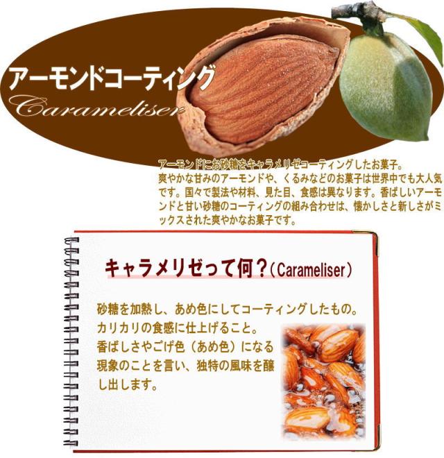 ■原材料名:アーモンド( アメリカ カリフォルニア産)、水あめ、砂糖、植物油脂/乳化剤(大豆由来)