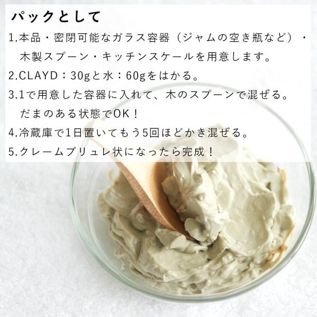 出来あがったクレイパックはお顔や背中など、全身にお使いいただけます。 ※薄く塗りたい場合や、長時間集中ケアをしたい場合は、霧吹きを使うなど表面を湿らせる工夫をするのがおすすめです。 ※パックの厚さ・肌の温度・湿度等により乾燥する速度は異なります。 こんなときに、こんな方に