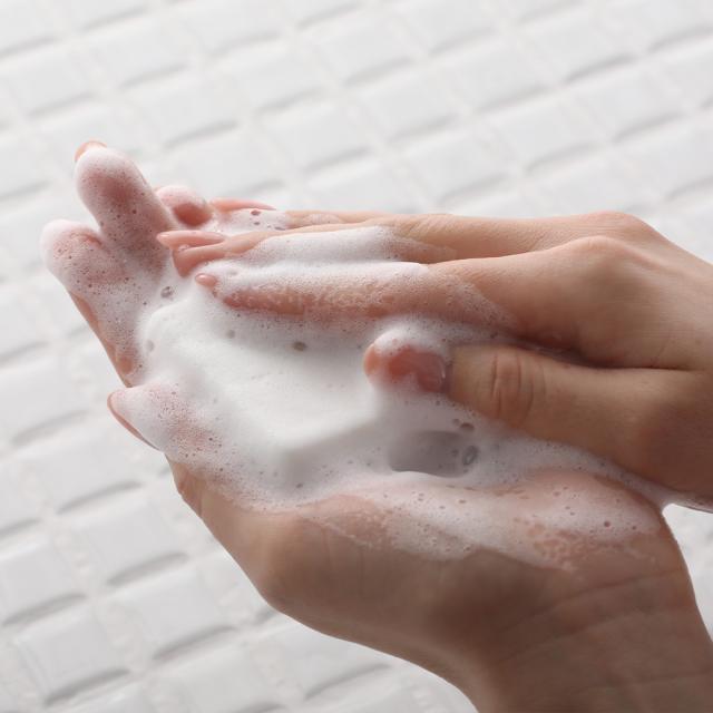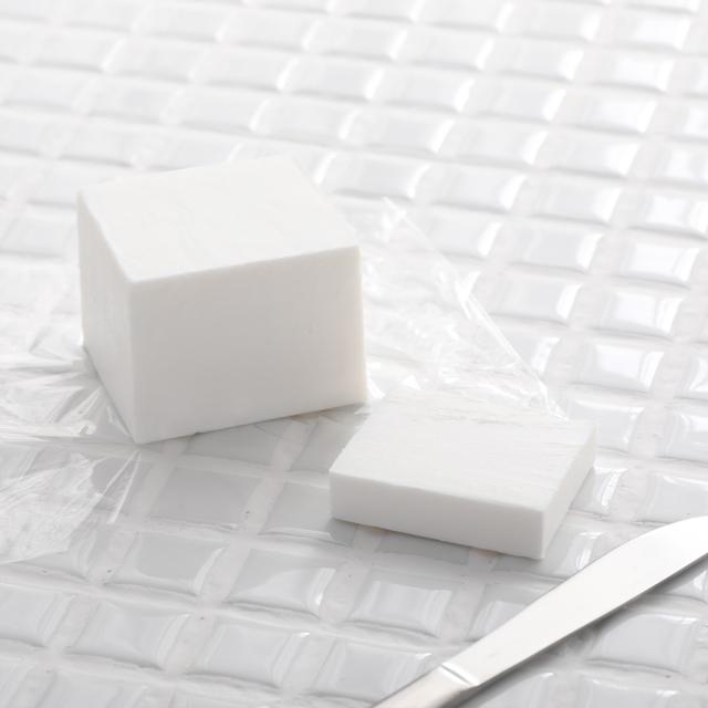 テーブルナイフ等で1cmほどの厚さにカットしたあと、水で濡らして軽く泡立て、肌をやさしく包み込むように洗います。ボディにもお顔にもお使いいただけます。
