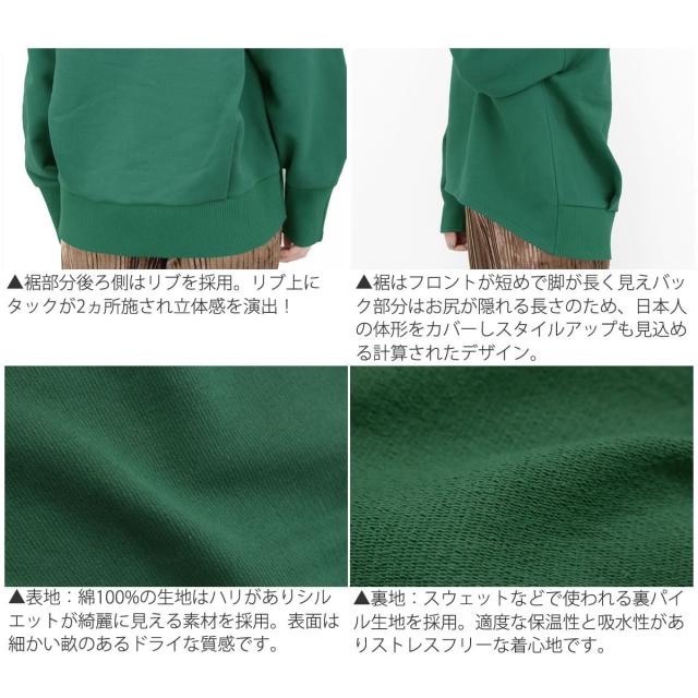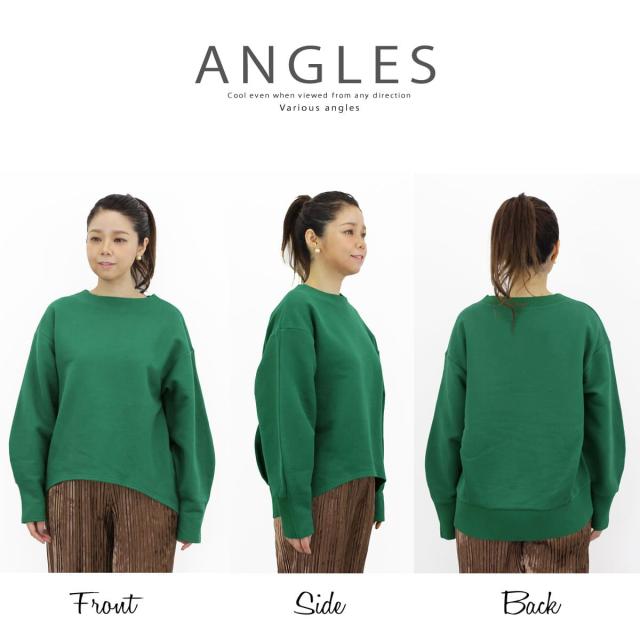 フロント側には、首周り・袖・裾などリブのディテールがないことで、スウェット感が無くキレイめなトップスとしてお使い頂けます。