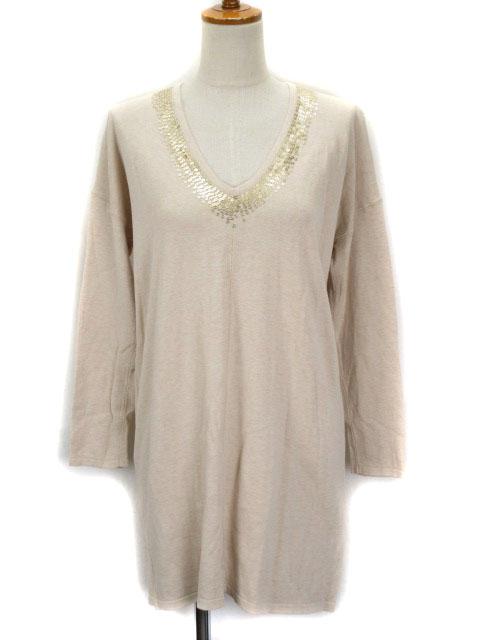 【中古】23区 オンワード樫山 カットソー チュニック ニット Vネック スパンコール シルク混 38 ベージュ レディース