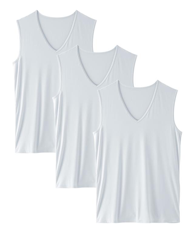 大きいサイズ メンズ 吸汗速乾 なめらか ストレッチ 深Vネック ノースリーブ 3枚組 夏 肌着 トップス 6L/7L/8L/10L