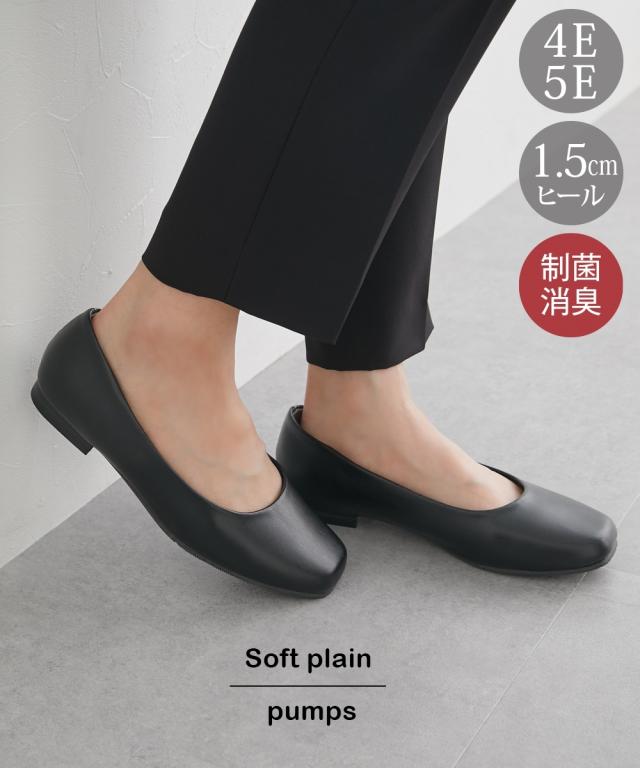 [keyword] 靴 レディース シューズ バッグ アクセサリー 大きいサイズ ぽっちゃり ふくよか プラスサイズ ラージ ファッション ローヒール ぺたんこ フラット 楽ちん 疲れにくい 低い かかと 4E 幅広 5E スクエアトゥ つま先が四角い おしゃれ ストラップなし 太ヒール チャンキーヒール 制菌 消臭 ニオイ 合成皮革 素材 合皮 生地 ベーシック シンプル 定番 着回し 女性用 ブラックフォーマル 喪服 礼服 冠婚葬祭 法事 葬式 お盆 フォーマル 黒 通勤 オフィスカジュアル ビジネス ビジカジ 仕事 きれいめ 就活 リクルート オフィス 面接 春 夏 秋 冬 [comment] ありそうでなかった、フォーマル靴の「ぺたんこ」デザインが登場!ラク〜に履けるキレイめパンプスを、ワイズが選べて、サイズも豊富にラインアップ。お仕事や冠婚葬祭などのあらたまったシーンで、美しく快適に履ける工夫をつめこんだ一足です。