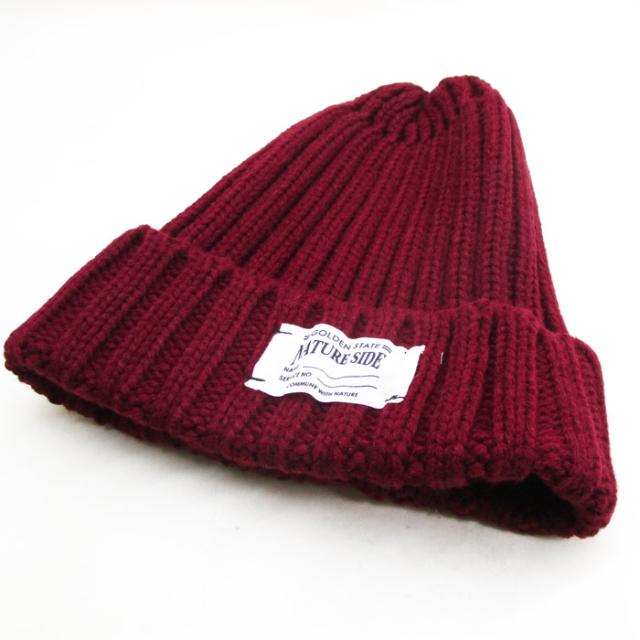 送料無料 リブニット ニット帽 キャップ 毛糸帽子 バーガンディ 4009