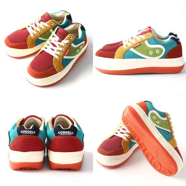 厚底スニーカー 通販 メンズ レディース スニーカー 厚底 おしゃれ サーフブランド GODDESS ゴッデス 履きやすい インソール 歩きやすい 厚底靴 厚底シューズ カジュアル 紐靴 ローカット バイカラー マルチカラー