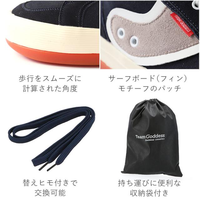| 商品説明 | ・湘南・茅ケ崎で創業50年の歴史を刻む、日本を代表するサーフブランド「GODDESS(ゴッデス)」の、ボリューム感のある厚底スニーカー。 ・足に大切な「3つのアーチ」をサポートする、「en bridge(エンブリッジ)」インソール搭載。正しい歩行姿勢を保持し、快適な履き心地。 ・内側は、肌触りが良いメッシュ素材で、通気性が良く快適。 ・サーフボードのフィンをかたどったサイドパッチがおしゃれ♪ ・サイズは、SS〜LLまであるので、レディース、メンズ、ペアで履くのも◎ ・替え紐付きで、スタイルに合わせて交換できる♪ ・持ち運びに便利な収納袋付き。 |