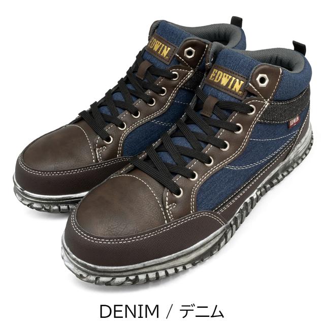 エドウィン 安全靴 メンズ ハイカット スニーカー 鉄先芯 衝撃吸収 防滑 軽量 おしゃれ 作業靴 EDWIN esm102|正規販売店