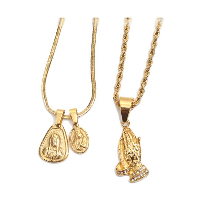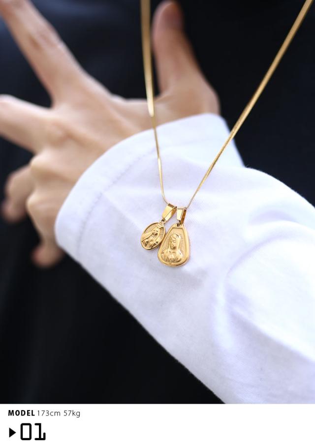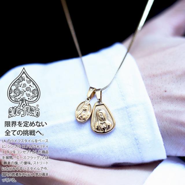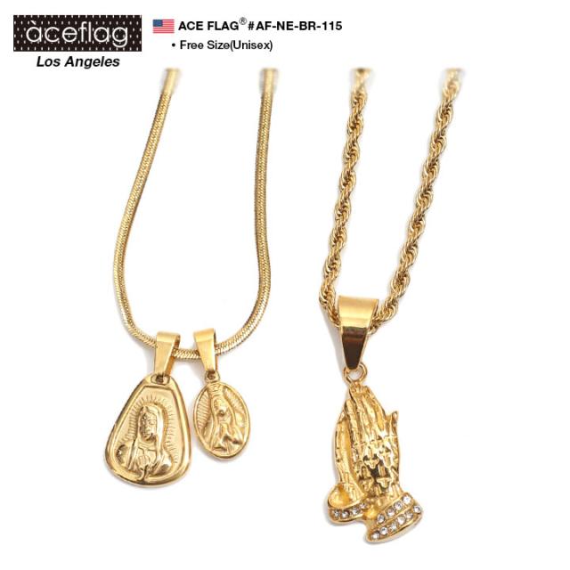 エースフラッグ ACEFLAG ネックレス ロングチェーン メンズ レディース マリア プレイ 男女兼用 b系 ヒップホップ おしゃれ プレイハンド 祈りの手 聖母マリア メダイ ペンダント 祈り 御守り 60cm AF-NE-BR-115