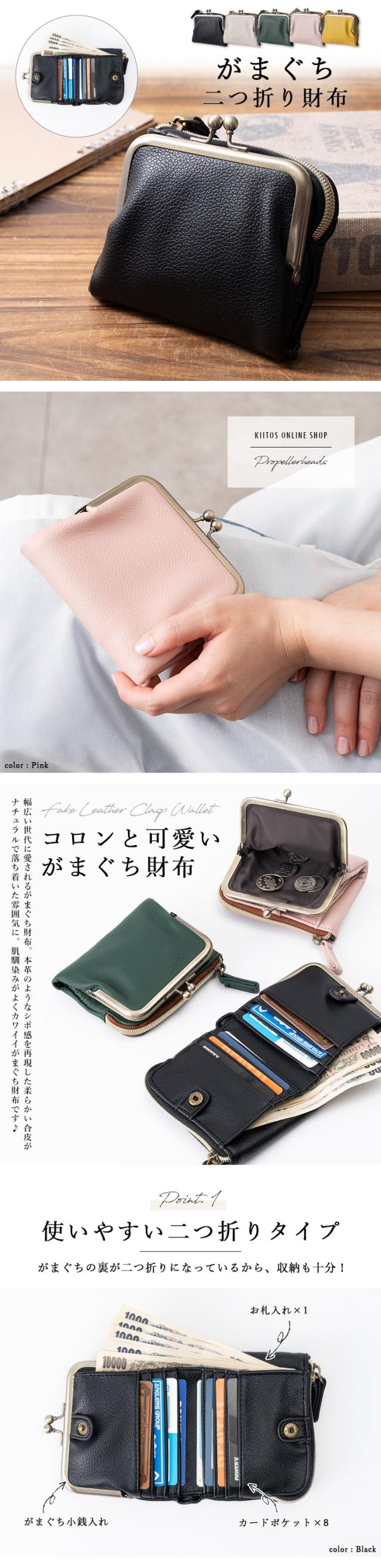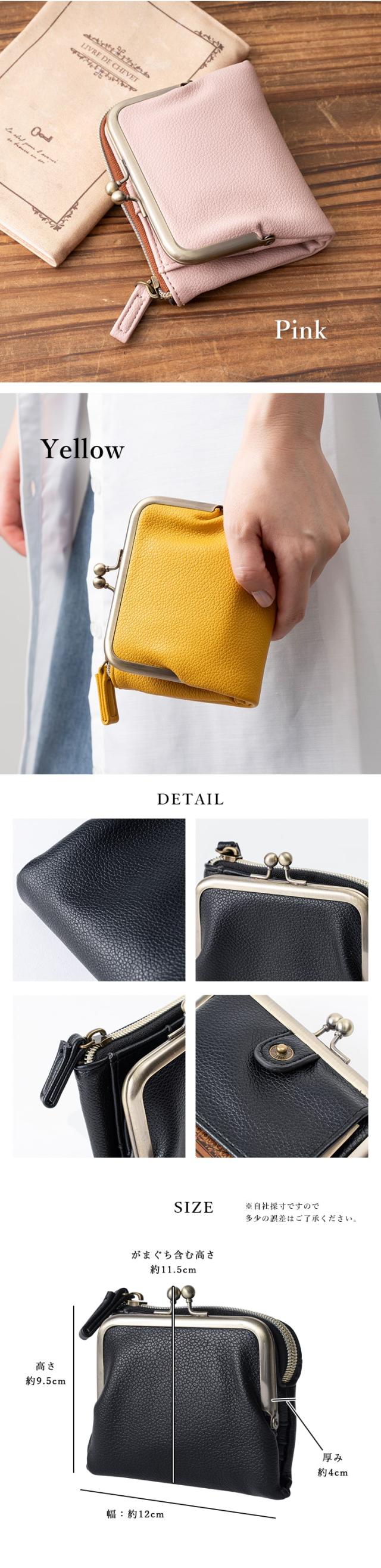 カバンの中にスッキリ収まる、二つ折りがま口財布。