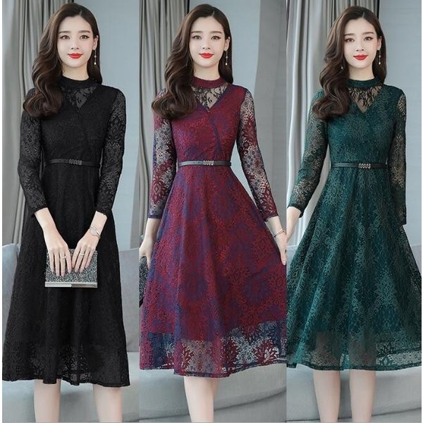 フォーマルドレス ワンピース レディース Aライン きれいめ ドレス レースワンピース 長袖 Aライン パーティードレス 上品 ママワンピース レースワンピース 結婚式 二次会 お呼ばれ