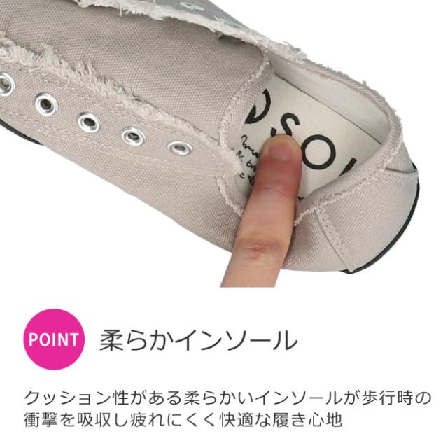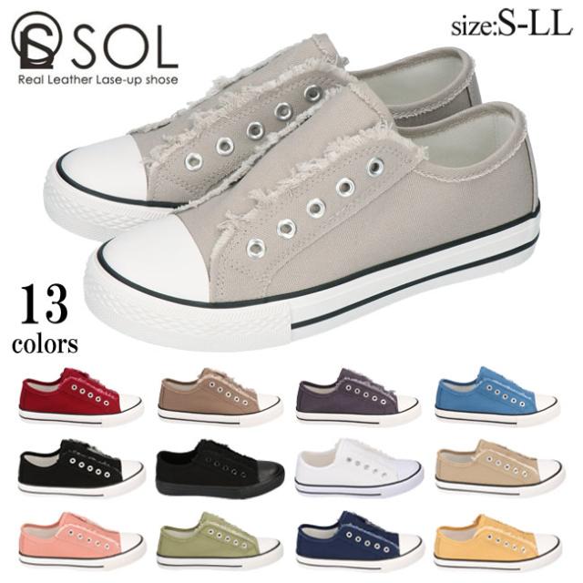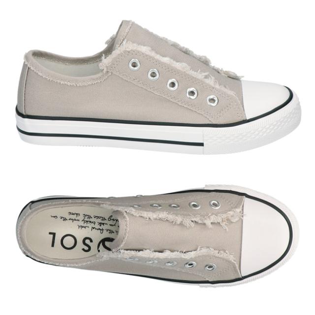 人気のカジュアルブランド『SOL(ソル)』から、切りっぱなしのデザインがかわいいスリッポンスニーカーです。