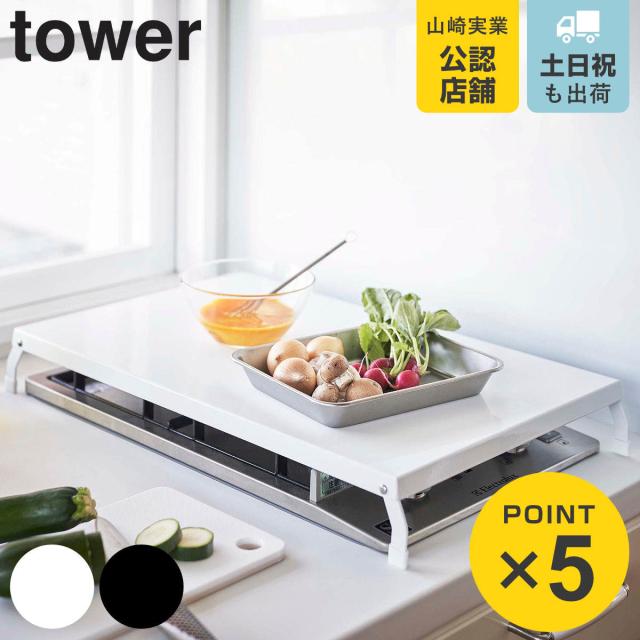 tower 山崎実業 折り畳みガスコンロカバー タワー ワイド ( 4903208049221 タワーシリーズ ガスコンロカバー スチール製 折り畳み コンロ用カバー レンジカバー コンロガード tower 山崎実業 キッチン 山崎実業 tower キッチン)