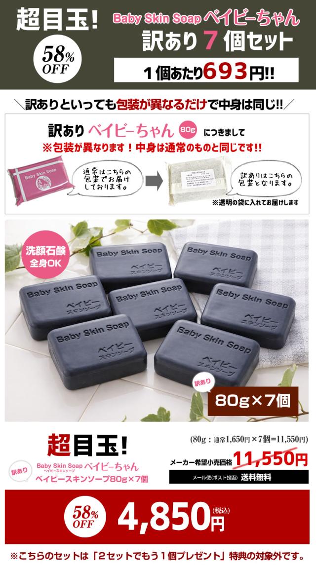 【超目玉】\58%OFF/【訳あり】訳あり石鹸7個 総合1位獲得!【メール便】送料無料 400万個突破「訳ありベイビーちゃん7個」総額11,550円⇒4,850円!1個あたりなんと【693円】★ベイビースキンソープ 毛穴 黒ずみ 角栓除去 ニキビ予防