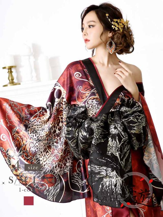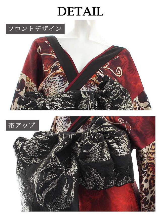☆派手なヒョウ柄で強めの印象の和柄ドレスは存在感抜群の大きいサイズまで展開するロングドレス。