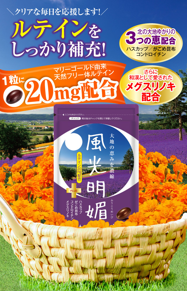 風光明媚(ふうこうめいび) 1袋 30粒(約30日分) ルテイン アイケア サプリ サプリメント 目